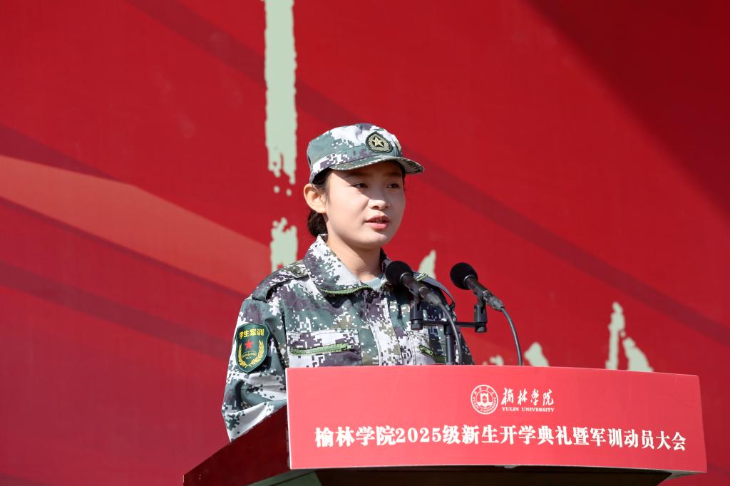 教师代表肖殷从要学会“归零”,重新出发;要珍惜时光,不负韶华;要立足榆林,胸怀天下三方面寄语2025级全体新生,少年应有鸿鹄志,当骑骏马踏平川,树立远大理想,勇担时代使命,潜心向学,勇于实践,主动拥抱人工智能,在追求真理的道路上不断超越自我,用实际行动践行“请党放心,强国有我”的青春誓言。