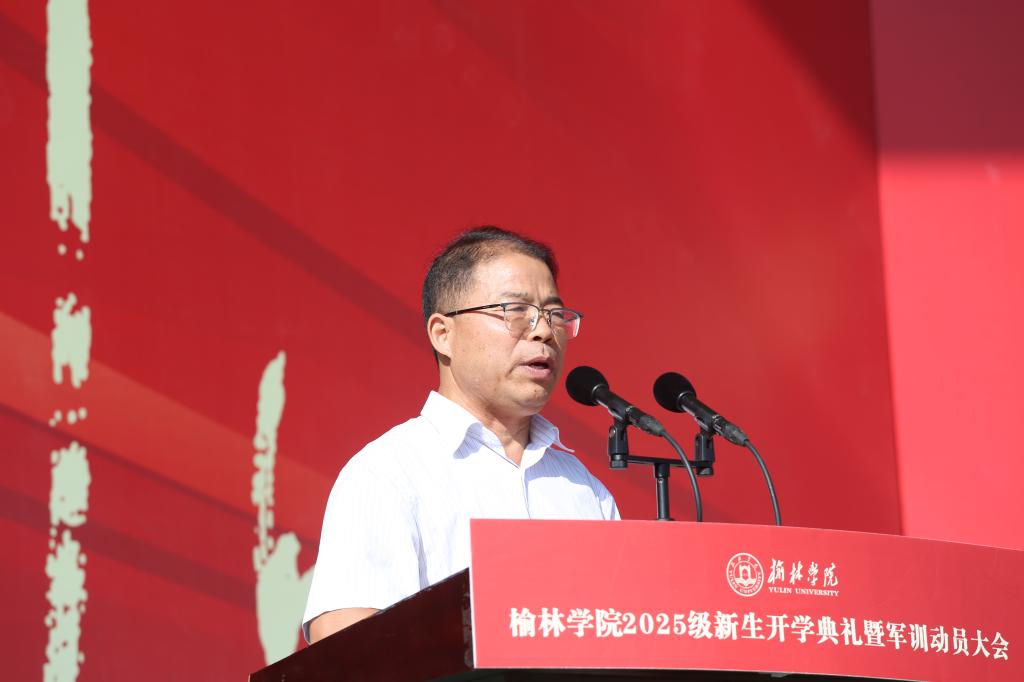 康伟代表学校向全体新生表示欢迎和祝贺,并作了题为《奋楫扬帆胸怀家国 做全面发展的五乐新人》的讲话。康伟指出,选择榆林学院就是选择扎根西北革命的红色沃土,就是选择融入校地共生的奋进征程,就是选择跻身一流应用型大学的崛起浪潮。他强调,榆林学院无比珍视每一位学子,把全体新生的姓名全部“刻进”了李子洲老校长提出的“读书勿忘救国,救国勿忘读书”的校训里,就是想告诉大家,从今天起,同学们将与榆林学院血脉相连,榆林学院将成为同学们相伴一生的精神家园。