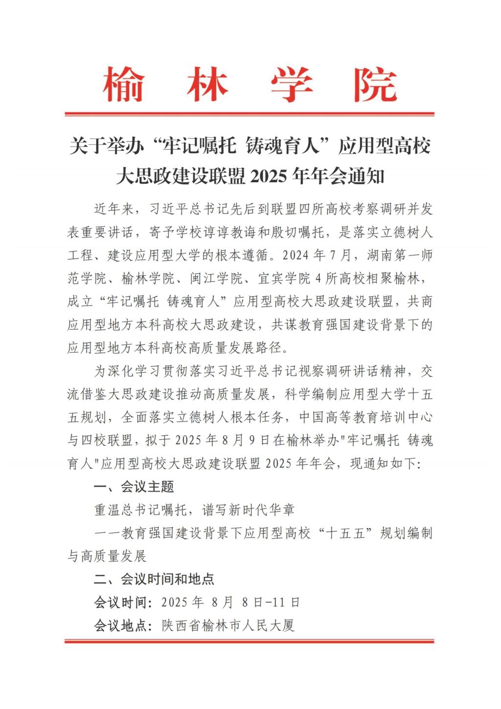 【有暑期没暑假】关于举办“牢记嘱托铸魂育人”应用型高校大思政建设联盟2025年年会通知